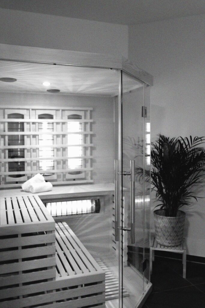 Tanke neue Energie in unserer wohltuenden Infrarotsauna. Die sanfte Wärme dringt tief in den Körper ein, löst Verspannungen, fördert die Durchblutung und sorgt für pure Entspannung. Regelmäßige Sitzungen unterstützen die Entgiftung und stärken das Immunsystem. Tauche in die angenehme Wärme ein, entspanne dich und lass die Infrarot-Technologie deine Energie und dein Wohlbefinden wiederherstellen.